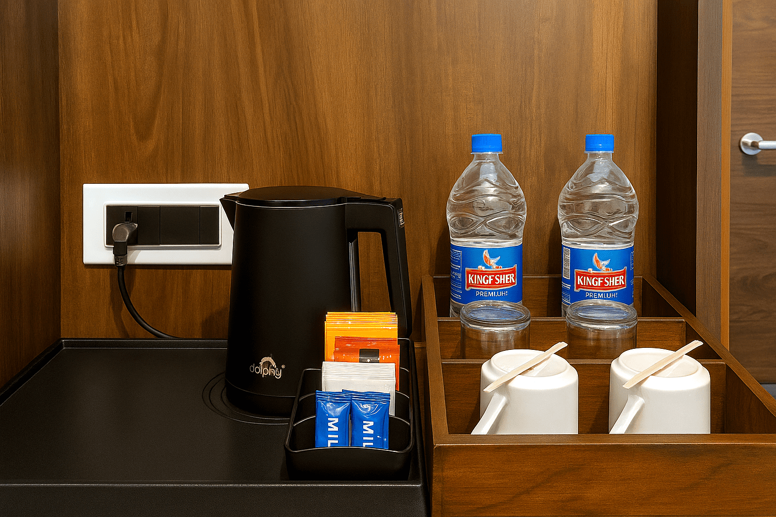 Enjoy the convenience of our in-room dining service, offering a wide selection from our curated menu card. Whether it’s a relaxed breakfast in bed, a midday snack, or a late-night craving, our team is just a call away.